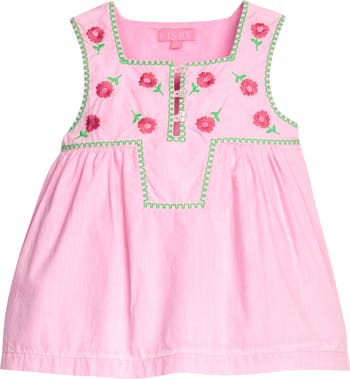 Easy and Breezy are the two words that come to mind when talking about the Keystone Top. This gorgeous embroidered cotton top features a decorative button placket, stunning greek key and floral embroidery detail along the yoke, and a relaxed shape perfect for your #BISBYgirl on those hot summer days.