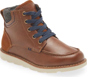 Plush lining and a side-zip closure keep your kiddo warm and cozy in this easy-on/off boot boasting a dapper faux-leather upper.