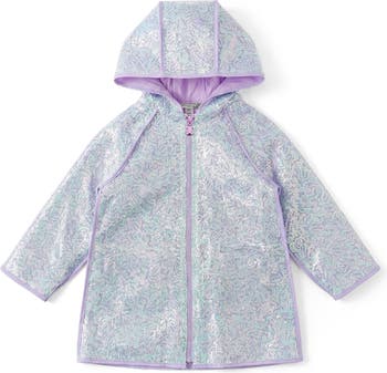 Puddle splashes are more fun in a sparkly rain jacket fixed with a cozy hood.
