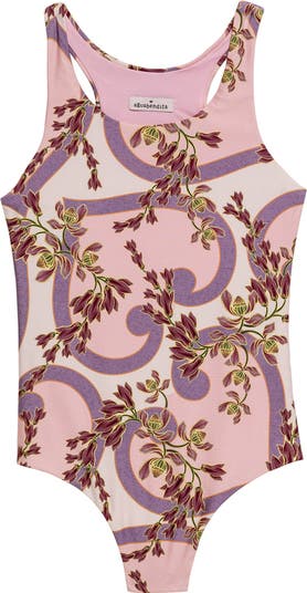 A sporty racerback and a bold placement print will have your kiddo feeling like they're on vacation in this stretchy one-piece swimsuit.