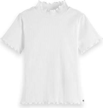 Crimped edges refine the look of a ribbed T-shirt made from stretch-added organic cotton.