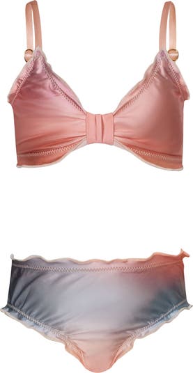 Lettuce edges bring playful energy to this two-piece swimsuit that'll keep them splashing happily all day long.