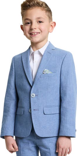 A pale-blue linen blend brings lightweight comfort to a suit jacket sized for kids who want to look smart at semiformal and warm-weather events. Fully lined and structured in the shoulders, it makes a versatile addition to any dressy wardrobe.