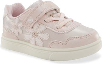 Glittery blooms light up with every step your kiddo takes in this memory-foam cushioned sneaker that's easy to get-on/off thanks to stretchy laces and an adjustable strap.