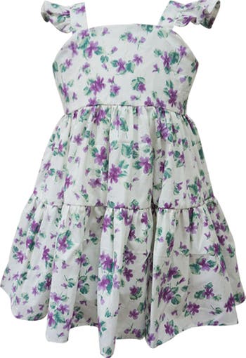 Popatu Kids' Lilac Floral Tiered Cotton Dress, Main, color, Lilac