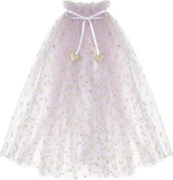 Your kid will be the star of the party in this frothy cape made from layers of frothy tulle and adorned with glittery golden hearts.