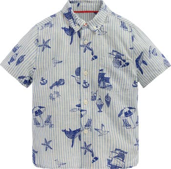 A summery print will bring a smile to their face in this crisp button-down shirt that will keep them cool thanks to a linen-and-cotton blend.