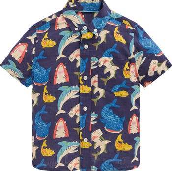 A playful print will bring a smile to their face in this crisp button-down shirt that will keep them cool thanks to a linen-and-cotton blend.