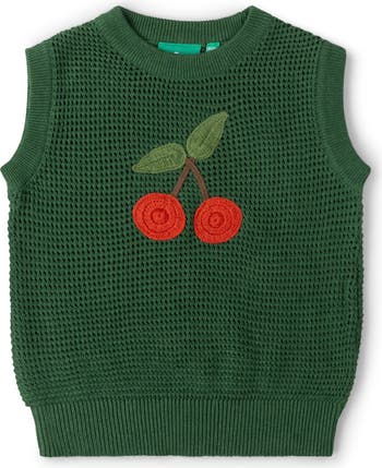 A sleeveless design and open stitch will keep your little one cozy and comfy in this cherry-sweetened sweater knit from organic cotton yarns.