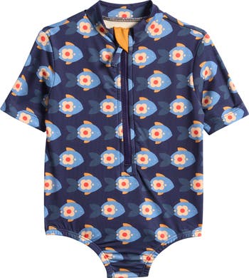 Built-in sun protection is just what they need for safe fun in the sun in this adorable one-piece swimsuit.
