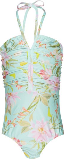 Texture and color are abundant in this floral-print swimsuit sized for junior trendsetters who take their style all the way to the beach.