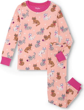 Kitties pose and play on soft and snug-fitting pajamas made from breathable organic cotton.
