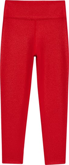 Your kiddo is sure to fall for the shiny textured fabric on these high-waisted leggings kept comfortable with a welcome helping of stretch.