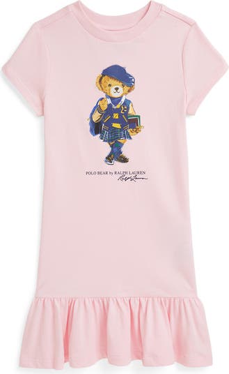 Classic logo graphics amplify the preppy style of this ruffle-trimmed dress made from soft cotton jersey.