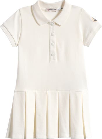 Give your tiny prepster a reason to twirl with this sporty piqué polo-dress with a crisply pleated skirt. A twin-peaked cockerel patch nods to the haute-mountaineering brand's après-ski aesthetic.