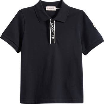 A logo-jacquard grosgrain placket brands this sporty kid-sized cotton-piqué polo detailed with Moncler's signature cockerel patch on one sleeve.