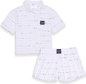 They'll sleep in signature Calvin Klein style when they head to bed in these logo-print short pajamas.