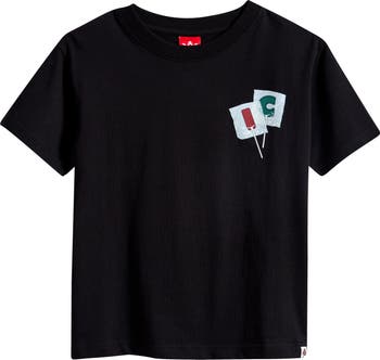 Alphabet lollipops spell out the brand's name on the back and chest of this soft cotton T-shirt your kid will love.