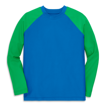 With the knowledge that kids aren't big fans of "reapplying," we made sure this rash guard had softness, stretch, and long sleeves for slather-free sun protection. | 80% recycled nylon/20% spandex | UPF 50+ protection