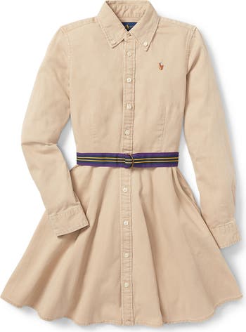 Your young prepster will look polished while staying comfortable in this timeless cotton shirtdress cinched at the waist with an integrated belt for a fresh pop of color.