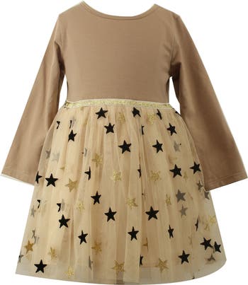 Your little star will twinkle all evening long in this twirl-worthy dress framed with long sleeves.