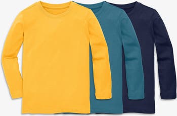 Our long sleeve classic tee is a building block of a kid's closet; in bright solid colors you can't find anywhere else now available in a 3-pack! Made from 100% cotton jersey that is incredibly soft and breathable. Offered in a slightly looser fit than our Long Sleeve Slim Tee. Pre-washed to minimize shrinkage.
