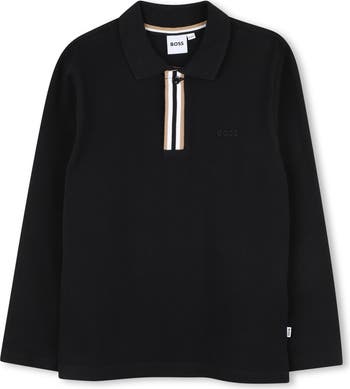 They'll love the elevated look of this breathable cotton polo featuring a contrasting striped placket and a tonal logo.