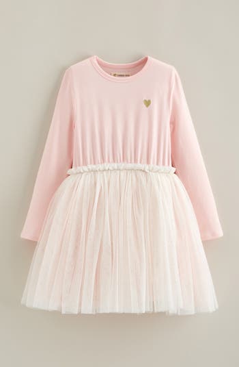 Tucker + Tate Kids' Long Sleeve Jersey & Tulle Dress, Alternate, color, Pink Balm- Gold Heart