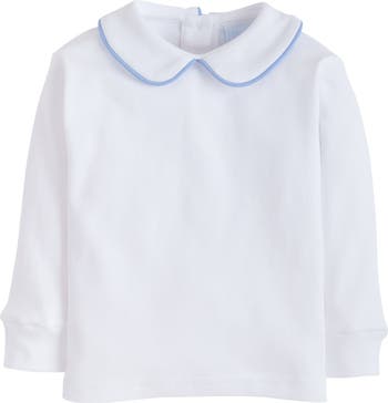 - Your favorite long sleeve layering piece for little boys, our Piped Peter Pan Shirt is made from the softest white cotton and features piping around the collar. This knit shirt is a classic, closet staple for fall!