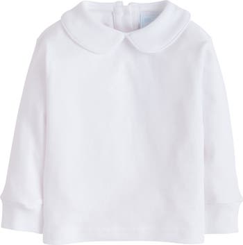 - Your favorite long sleeve layering piece for little boys, our Piped Peter Pan Shirt is made from the softest white cotton and features piping around the collar. This knit shirt is a classic, closet staple for fall!