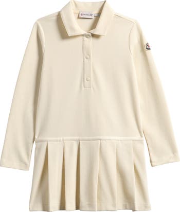 Moncler Kids' Long Sleeve Pleated Polo Dress, Alternate, color, Ivory