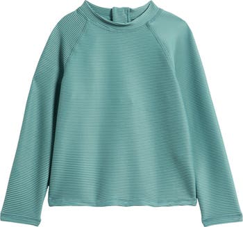 This ribbed rashguard keeps your youngster splashing happily with long sleeves that block out the sun, sand and surf.