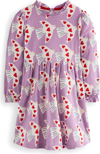 Blouson sleeves frame a roomy cotton-jersey dress that's printed with sweet love birds in flight and finished with frill at the neck and cuffs.