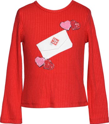 They'll be handing out sweetness in this ribbed T-shirt featuring a love-letter-inspired appliqué on the front.
