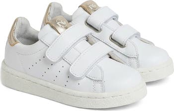 A pair of adjustable straps offer a secure and customized fit on an Italian leather sneaker featuring a low-top profile and grounded by a play-ready cupsole.