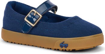 An adjustable mary jane strap offers easy wear and a secure fit in this corduroy flat that's cute enough for formal events but comfortable enough for the playground.