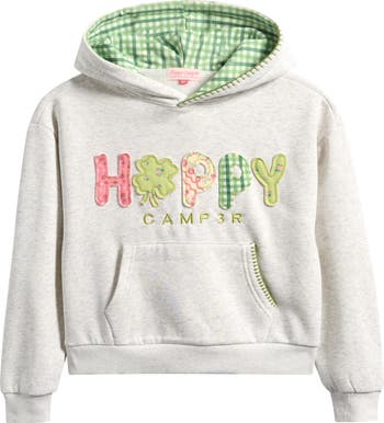 Keep your child cozy in this adorable hoodie featuring playfully patterned patches at the chest.