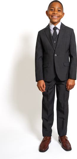 The Luxor Kem Charcoal Kids suit projects an elegant rich charcoal hue, making it the perfect choice for ring-bearers, weddings, or any formal occasion. Crafted with attention to detail, this suit features a unique blend made from poly/wool with lycra and has a two-way stretch, making it as comfortable as it is stylish. The inspiration is taken from the beautiful, modern textiles of Egypt.