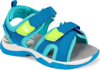 Open-knit mesh and overlays give cool pops of contrast to this sturdy sandal that's made to get dirty and easy to wash in the machine. This sandal is carefully constructed with a supportive OrthoLite® footbed that will keep your little one's feet feeling comfy all day.
