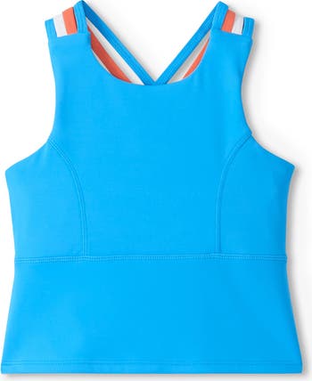 Your sporty kid will stay comfortable during any activity in this soft and stretchy tank distinguished by colorful crisscross straps at the back.