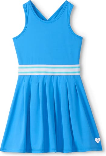 Your active kid will love playing and twirling in the soft-and-stretchy comfort of this pleated skirt dress.