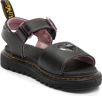 A glittery, puffy heart inlay and heart-shaped buckle make this sweet kid-sized sandal crafted from Ludico leather easy to love.