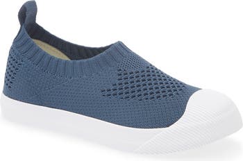 A breathable knit upper lends a sock-like fit to this kid-size sneaker outfitted with an extended front bumper to protect against stubs.