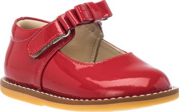 A charming bow tops this cushioned mary jane that's easy for your kiddo to get on with an adjustable hook-and-loop strap.