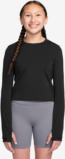 This performance top uses flat mesh and sweat-wicking Dri-FIT technology to move sweat away from your child's skin for quicker evaporation, letting them stay dry and comfortable.