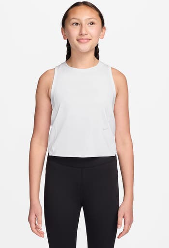 This performance tank features flat mesh and sweat-wicking Dri-FIT technology to move sweat away from your child's skin for quicker evaporation, letting them stay dry and comfortable.