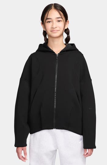 Let your child escape from the cold in an oversized hoodie made from soft knit fabric with Therma-FIT technology to help them stay cozy and comfortable without bulk.