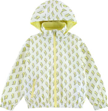 They'll be prepared for rainy days in this water-repellent windbreaker that reverses from a print to solid for two looks in one. A stowaway hood offers optional extra coverage and when the sun comes out the jacket can be packed into a star-shaped pouch.