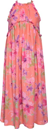 Easy-moving stretch ensures they'll be feeling confident all day long in this ruffled sundress, featuring a breezy back cutout and a tiered skirt.