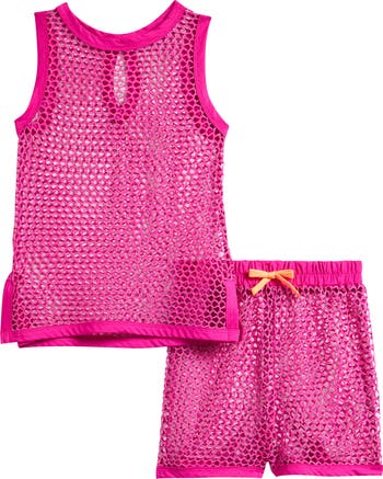 Breezy mesh in a bold hue helps keeps your child cool as they lounge poolside in this tank and shorts set.